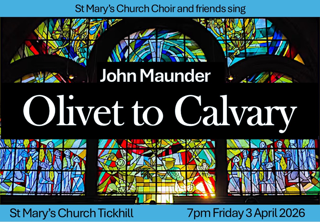 To help celebrate Easter this year, St Mary’s Church choir is being joined by friends to sing John Maunder’s version of the Easter story ‘Olivet to Calvary’. The service takes place in St Mary’s Church at 7.00pm on Good Friday, 3 April 2026 and all are most welcome.